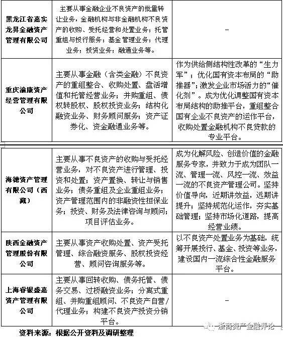 從長期來看,隨著去產(chǎn)能、降杠桿、結(jié)構(gòu)轉(zhuǎn)型的推進,山西、吉林、黑龍江、河南等重工業(yè)、能源業(yè)比重較高的省份,承擔(dān)著較大的傳統(tǒng)產(chǎn)業(yè)(鋼鐵、化工、有色、建材等)轉(zhuǎn)型升級的壓力,因此中部部分地區(qū)的不良資產(chǎn)在未來幾年將繼續(xù)上升。同理,東部地區(qū)部分省份(以黑龍江、吉林為代表的老牌工業(yè)基地)的產(chǎn)業(yè)結(jié)構(gòu)也亟需調(diào)整,不良資產(chǎn)市場將快速擴張。而這也為上述區(qū)域的資產(chǎn)管理公司帶來了機遇,不良資產(chǎn)處置需求的上升,將推進地方AMC不良資產(chǎn)處置業(yè)務(wù)的發(fā)展,擴大不良資產(chǎn)處置業(yè)務(wù)的規(guī)模,充分發(fā)揮地方金融穩(wěn)定器的職能,助力地方產(chǎn)業(yè)轉(zhuǎn)型升級。