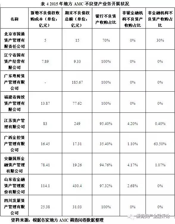 相比之下,東部沿海各?。ㄒ哉憬V東、上海為代表)的不良資產(chǎn)顯化程度較高,隨著經(jīng)濟結(jié)構(gòu)調(diào)整的不斷推進和完善,以及新型產(chǎn)業(yè)和新經(jīng)濟增長點的確定,東部地區(qū)相對發(fā)達的經(jīng)濟基礎(chǔ)和產(chǎn)業(yè)結(jié)構(gòu),可能使其在未來2-3年會率先走出不良抬高的趨勢,因此該區(qū)域的資產(chǎn)管理公司在開展不良資產(chǎn)業(yè)務(wù)的同時,還需要拓展其他類型的資管業(yè)務(wù)以順應(yīng)不良資產(chǎn)市場結(jié)構(gòu)的變化。