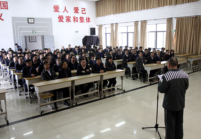 接著,全體參觀人員參加了現(xiàn)場廉政警示教育會。整個警示教育會分三部分。第一部分由教改科教員簡單介紹二監(jiān)的歷史,并且播放了二監(jiān)的宣傳教育片,讓我們更加立體及全面的了解二監(jiān)在新時期建立的“健康+”特色管理模式。