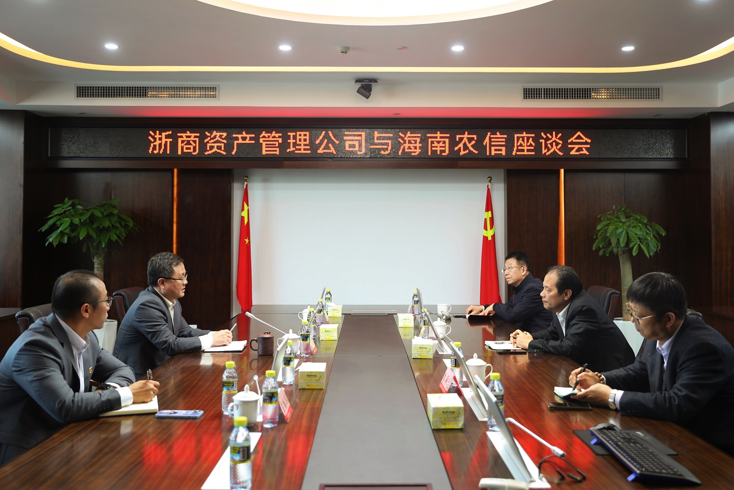 2月24日上午,調(diào)研組一行拜訪了海南省地方金融監(jiān)督管理局,雙方圍繞房地產(chǎn)領(lǐng)域風(fēng)險(xiǎn)化解、深耕海南自由貿(mào)易港等方面展開(kāi)深入交流。海南省地方金融監(jiān)督管理局局長(zhǎng)陳陽(yáng)歡迎浙商資產(chǎn)積極參與海南自貿(mào)港建設(shè),希望浙商資產(chǎn)能充分發(fā)揮在不良資產(chǎn)收購(gòu)處置、投行化處置和產(chǎn)融協(xié)同方面的經(jīng)驗(yàn),圍繞貫徹落實(shí)《金融支持海南全面深化改革開(kāi)放的意見(jiàn)》,進(jìn)一步加強(qiáng)與海南聯(lián)合資產(chǎn)、海南省農(nóng)村信用社聯(lián)合社的合作,積極壓降海南省金融不良、防化區(qū)域金融風(fēng)險(xiǎn),共同助力海南自由貿(mào)易港建設(shè)。