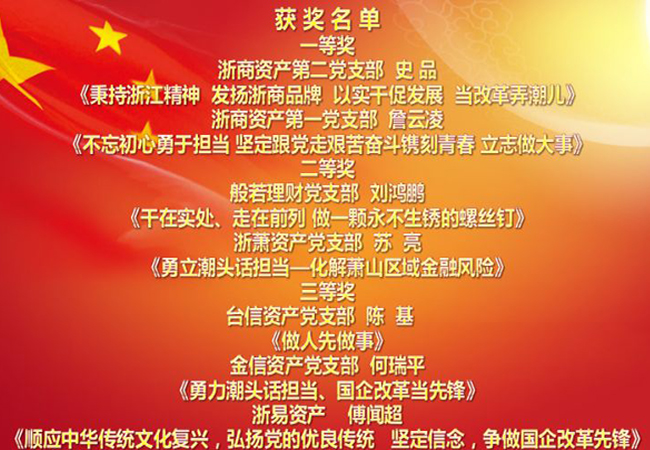 本次微黨課大賽宣講員們精心準(zhǔn)備,主題宣明,有圍繞集團(tuán)、公司戰(zhàn)略的“秉持浙江精神 發(fā)揚(yáng)浙商品牌”、“不忘初心勇于擔(dān)當(dāng) 堅(jiān)定跟黨走”,也有結(jié)合工作實(shí)際的 “如何干在實(shí)處、走在前列 做一顆永不生銹的螺絲釘”、“如何化解蕭山區(qū)域金融風(fēng)險(xiǎn)” 、“做人先做事”。在比賽現(xiàn)場,選手們鏗鏘有力,激情奮發(fā),講述了一堂堂內(nèi)容生動(dòng)、精彩紛呈的微型黨課,充分展示了公司黨員高尚的理想追求和昂揚(yáng)的工作熱情。經(jīng)過評(píng)委公正的評(píng)判,最終選出了一等獎(jiǎng)二名,二等獎(jiǎng)二名,三等獎(jiǎng)三名,并推薦一等獎(jiǎng)參加集團(tuán)微黨課大賽。