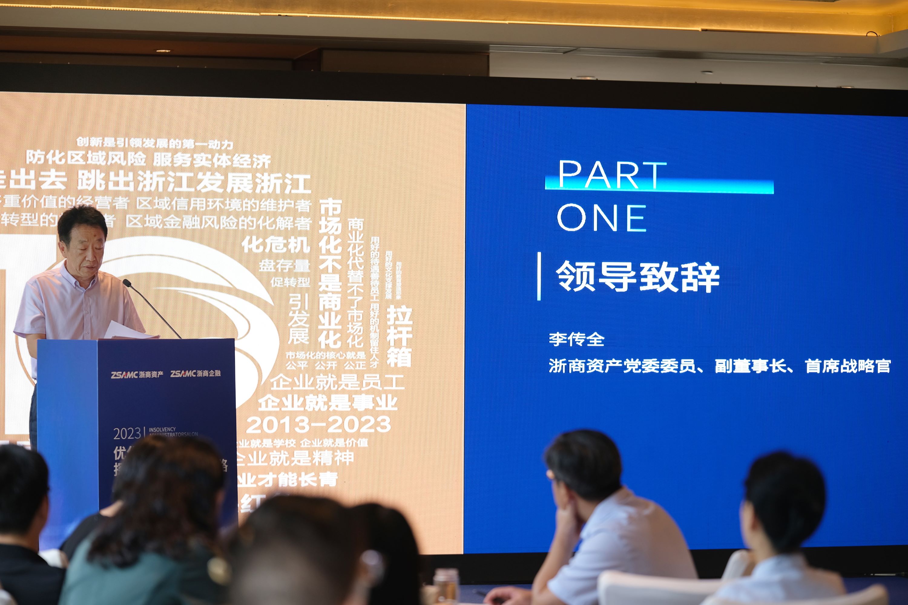 沙龍伊始,浙商資產(chǎn)黨委委員、副董事長、首席戰(zhàn)略官李傳全對地方AMC破產(chǎn)管理人履職和破產(chǎn)重整業(yè)務進行了全面解讀。他在致辭中表示,面對當前破產(chǎn)清算案件不斷攀升、破產(chǎn)重整需求逐步擴大的特殊投資機遇,地方AMC應積極介入破產(chǎn)業(yè)務領域,充分發(fā)揮自身逆周期金融救助功能,通過專業(yè)化重整重組手段最大限度挖掘潛在價值,幫助企業(yè)恢復正常運營能力。同時,地方AMC應加強協(xié)作、共享發(fā)展機遇,共同推動行業(yè)在破產(chǎn)業(yè)務領域上邁向新臺階、取得新突破。
