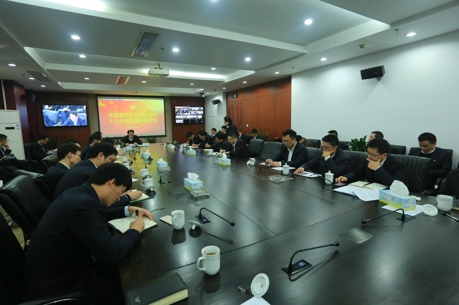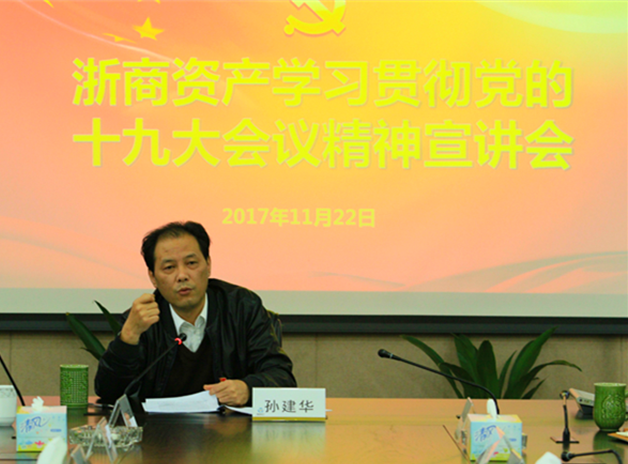 孫建華書記要求,要在十九大精神的指引下,推動浙商資產(chǎn)加速發(fā)展。一要牢牢把握十九大對國有企業(yè)的有關(guān)論述,按照“培育一流企業(yè)”要求,更高標(biāo)準(zhǔn)、更高要求制定戰(zhàn)略規(guī)劃,堅(jiān)持勇立潮頭,盡快打造資產(chǎn)管理公司全國性品牌;二要對照金融領(lǐng)域作出的針對性部署,助力解決不平衡不充分的發(fā)展、助力省委提出的鳳凰計(jì)劃、助力集團(tuán)產(chǎn)業(yè)共融發(fā)展,把服務(wù)實(shí)體經(jīng)濟(jì)作為天然使命,擔(dān)起責(zé)任、有所作為;三要根據(jù)十九大精神,研究如何提升公司競爭力的問題,在站穩(wěn)資本優(yōu)勢的基礎(chǔ)上,依靠出色業(yè)務(wù)能力,做好企業(yè)文化,提升品牌影響力;四要補(bǔ)齊工作短板,按照上市公司標(biāo)準(zhǔn)和監(jiān)管部門對四大AMC公司監(jiān)管標(biāo)準(zhǔn)這“兩個標(biāo)準(zhǔn)”,拉高標(biāo)桿,穩(wěn)健推進(jìn)制度、管理和信息化等工作;五要加強(qiáng)黨的建設(shè),把黨領(lǐng)導(dǎo)一切和公司工作結(jié)合起來,抓好領(lǐng)導(dǎo)班子、黨支部和黨員隊(duì)伍建設(shè),努力在黨建工作方面出成效、亮名片;六要深化人才隊(duì)伍建設(shè),在關(guān)心人才、提供平臺等方面下功夫,不斷優(yōu)化引才育才用才的良好環(huán)境,把各方精英吸收到公司來,打造人才高地。