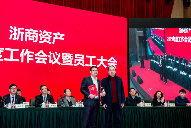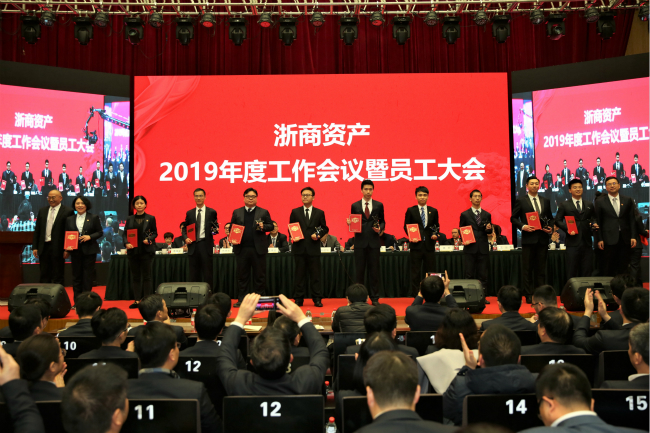 1月25日,浙商資產(chǎn)召開2019年度工作會議。省地方金融監(jiān)督管理局金融保障處吳登寬處長,浙商資產(chǎn)董事、監(jiān)事、股東代表,全體領(lǐng)導(dǎo)班子成員、業(yè)務(wù)副總經(jīng)理,浙商資產(chǎn)本級及下屬成員公司全體員工(含億利達(dá)公司的部分代表)等共計近500人參加了會議,會議由副董事長徐曉東主持。