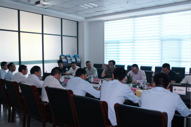 青島海洋總經(jīng)理劉培禮對孫建華董事長一行的到來表示熱烈歡迎,并詳細(xì)介紹了公司的技術(shù)研發(fā)、主要產(chǎn)品、業(yè)務(wù)開展等情況。孫建華董事長一行認(rèn)真聽取了匯報,充分肯定了青島海洋發(fā)展取得的成就,并對公司未來發(fā)展方向、戰(zhàn)略規(guī)劃、業(yè)務(wù)拓展等內(nèi)容進(jìn)行了交流指導(dǎo)。