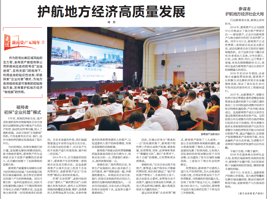【浙江日報】走近浙商資產五周年系列二:護航地方經濟高質量發(fā)展